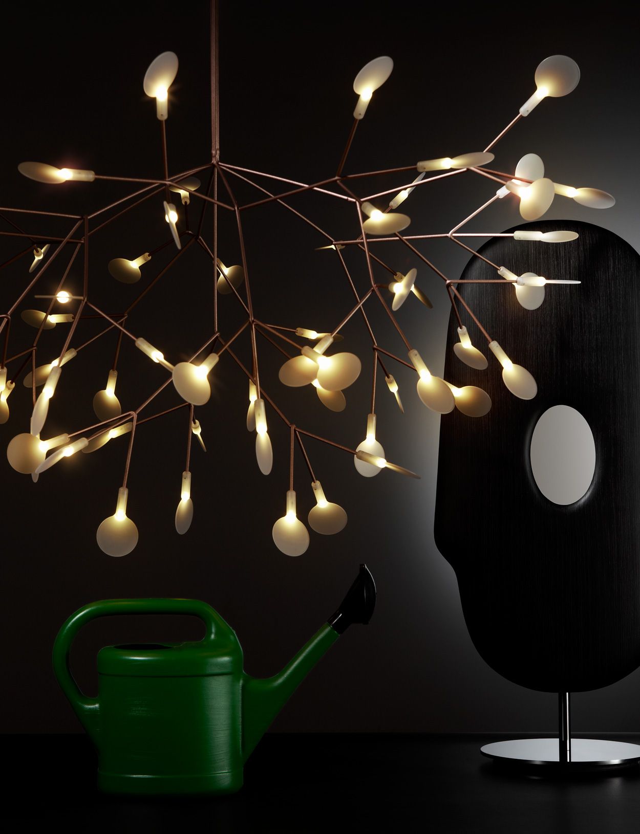 Không chỉ lấy cảm hứng từ hình dạng của hoa Heracleum mà nhà thiết kế còn lấy luôn tên của loại cây này để đặt tên cho đèn. Đây là phiên bản đèn Heracleum II thanh mảnh hơn kết hợp với đèn LED có khả năng chiếu sáng tuyệt vời. Đèn có đường kính 98cm x cao 65cm, cấu thành từ khung dây kim loại, thấu kính polycarbonate, dây treo siêu mỏng, đồng và niken.